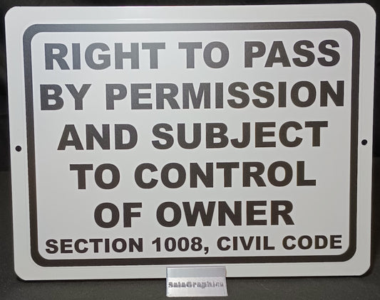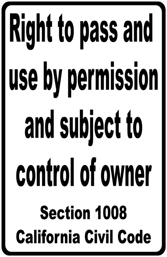 Right to Pass by Permission Subject Control of Owner California Civil Code Sign Regular price From $ 22.99Sale price From $ 22.99 Regular priceUnit price ( per )