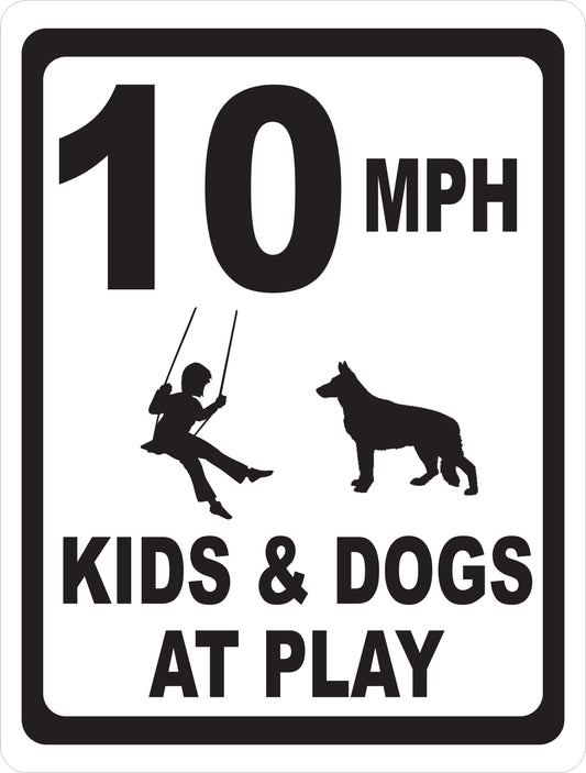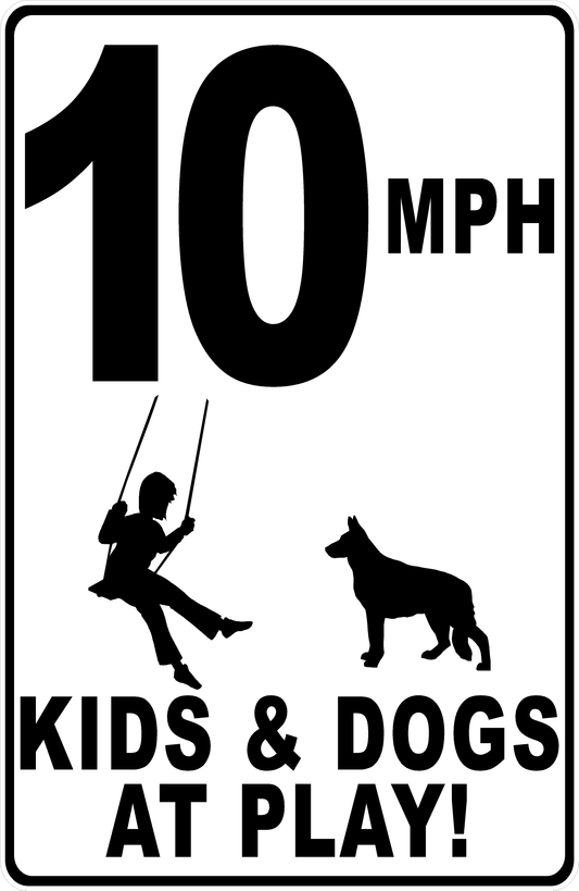 MPH Kids & Dogs at Play with Posted Speed Limit Sign