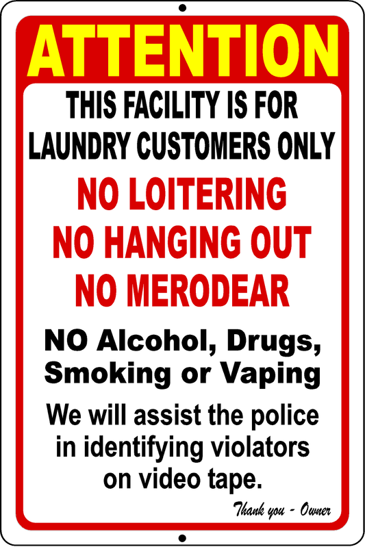 Attention This Facility is for Laundry Customers Only Sign Customizable
