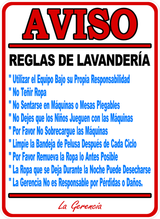Laundry Cart Rules Laundromat Sign English or Spanish