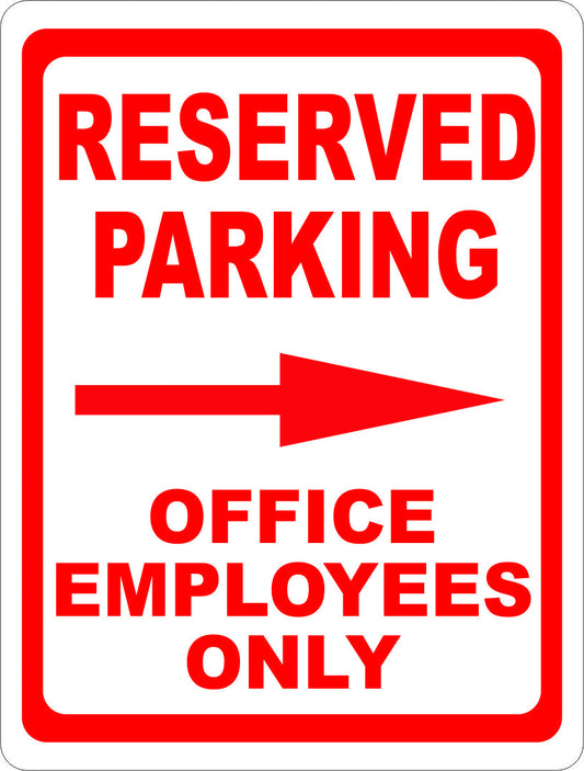 Reserved Parking Office Employees Only Sign w/ Directional Arrows