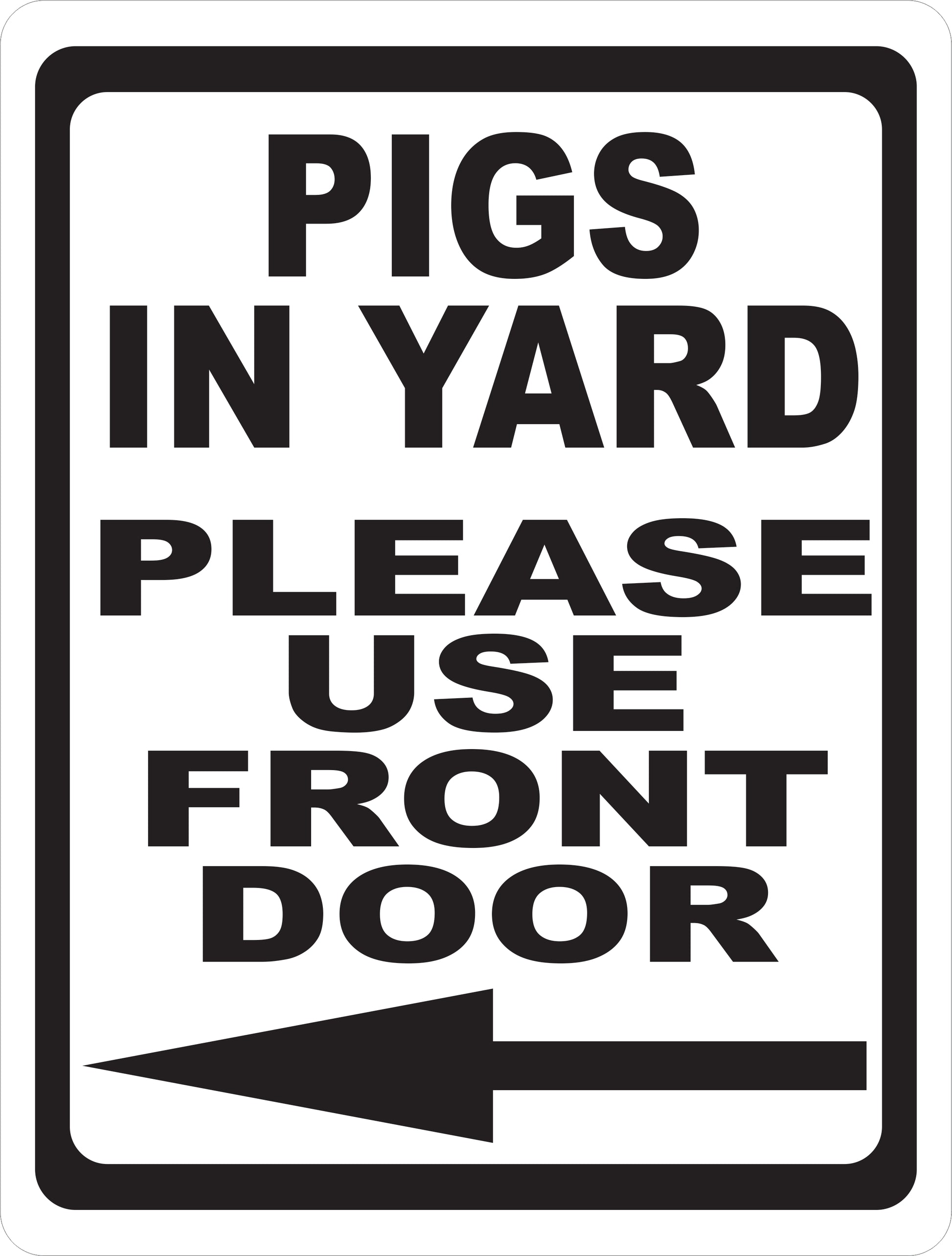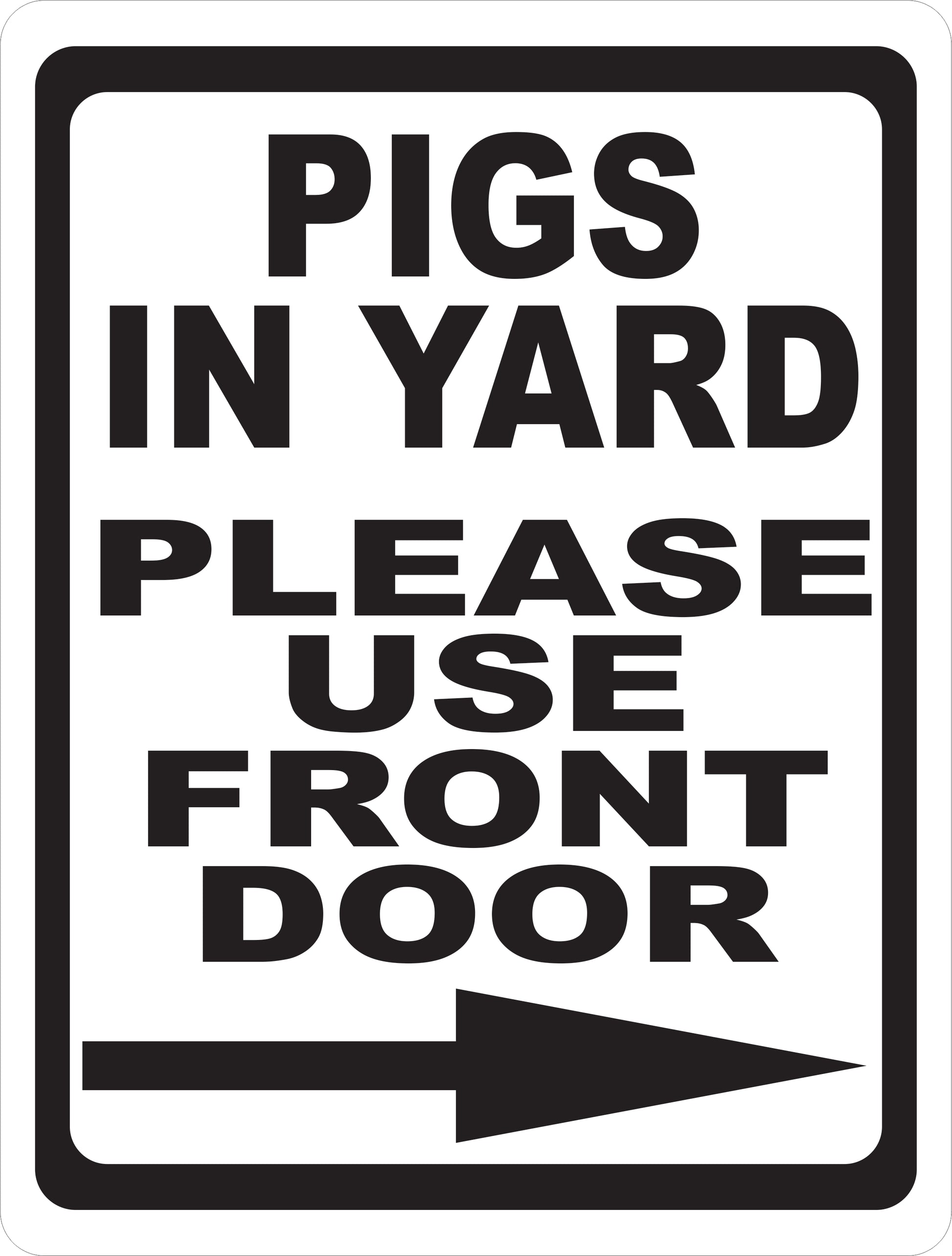 Pigs in Yard Please Use Back/Front Door with Directional Arrow Sign