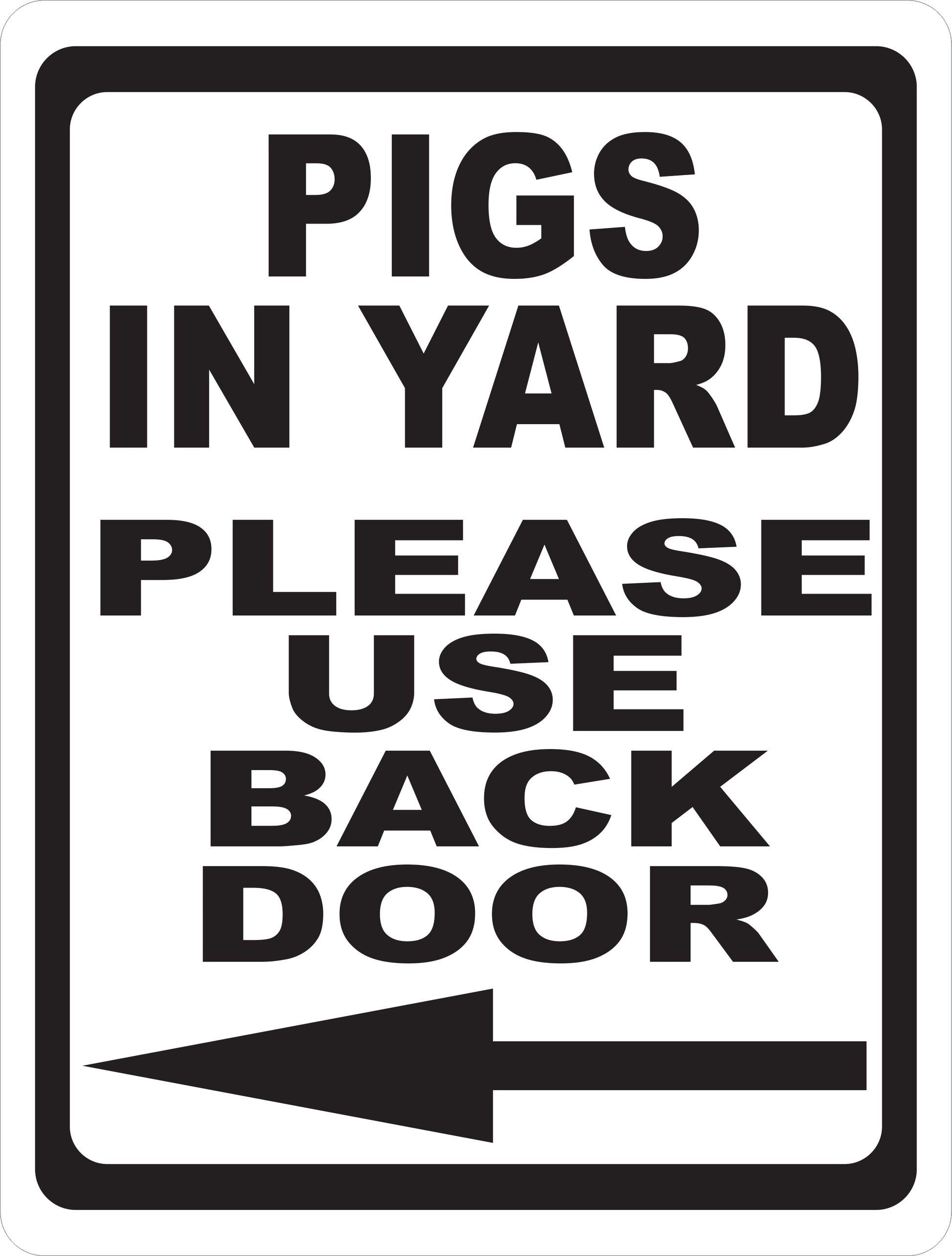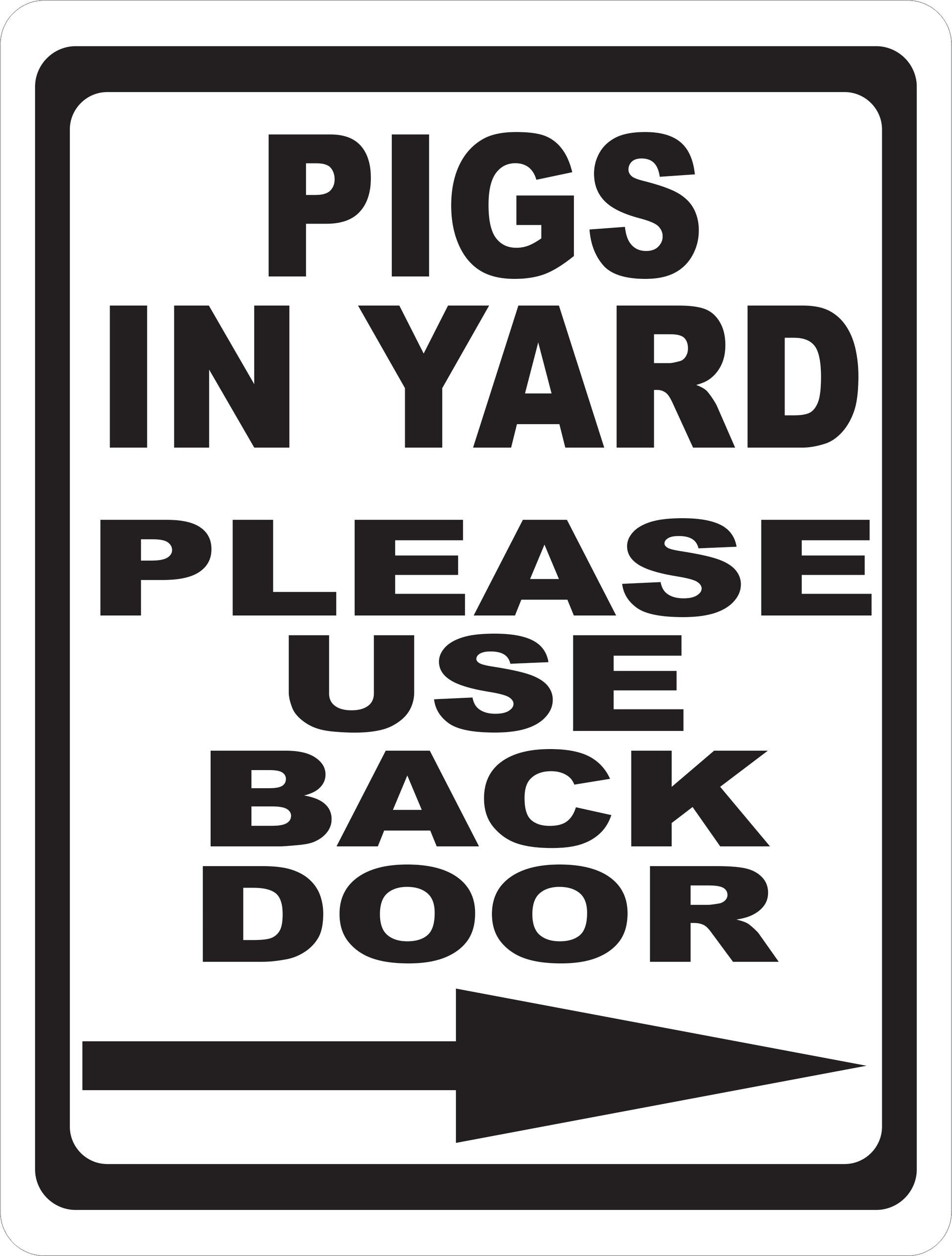 Pigs in Yard Please Use Back/Front Door with Directional Arrow Sign Details