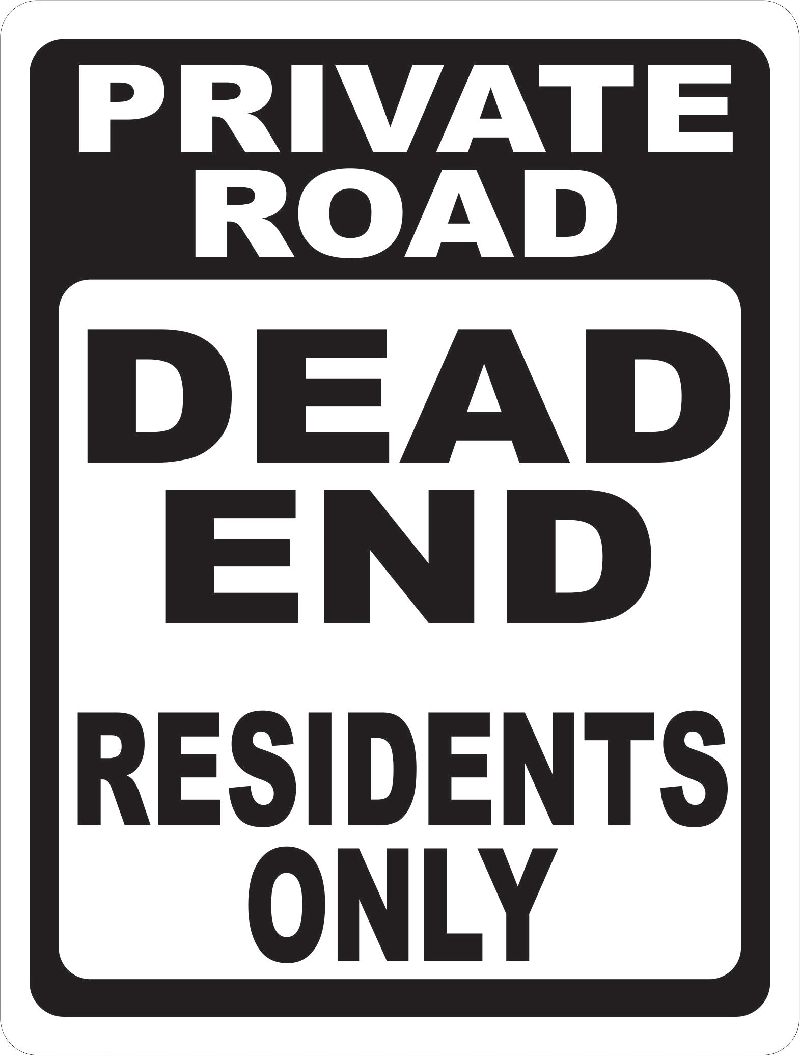 Inform drivers that they have reached a private road and residents are the only ones allowed with this Private Road Dead End Residents Only sign. A clear and formal sign to prevent unauthorized access for the safety and security of the residents. Reflective option available.