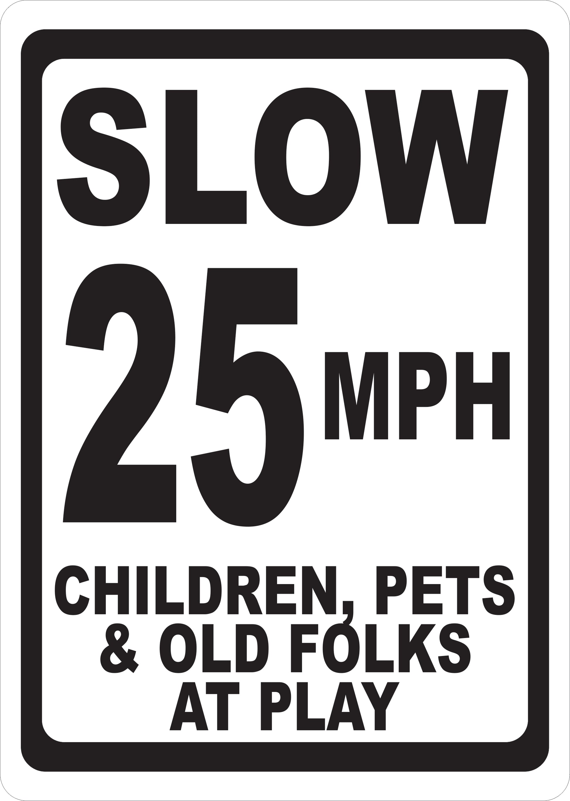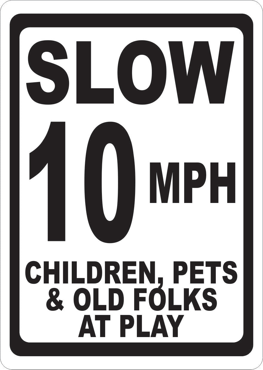Slow (Your Choice) MPH Children Pets & Old Folks at Play Sign Details