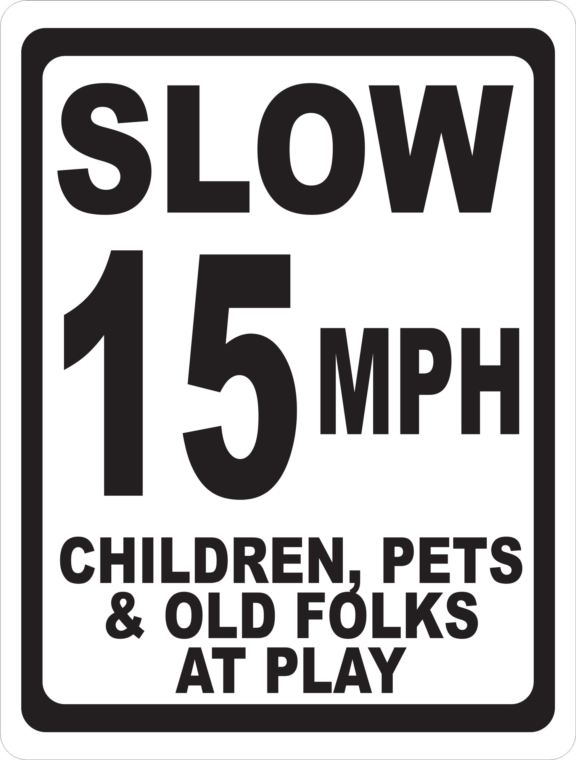 Slow (Your Choice) MPH Children Pets & Old Folks at Play Sign