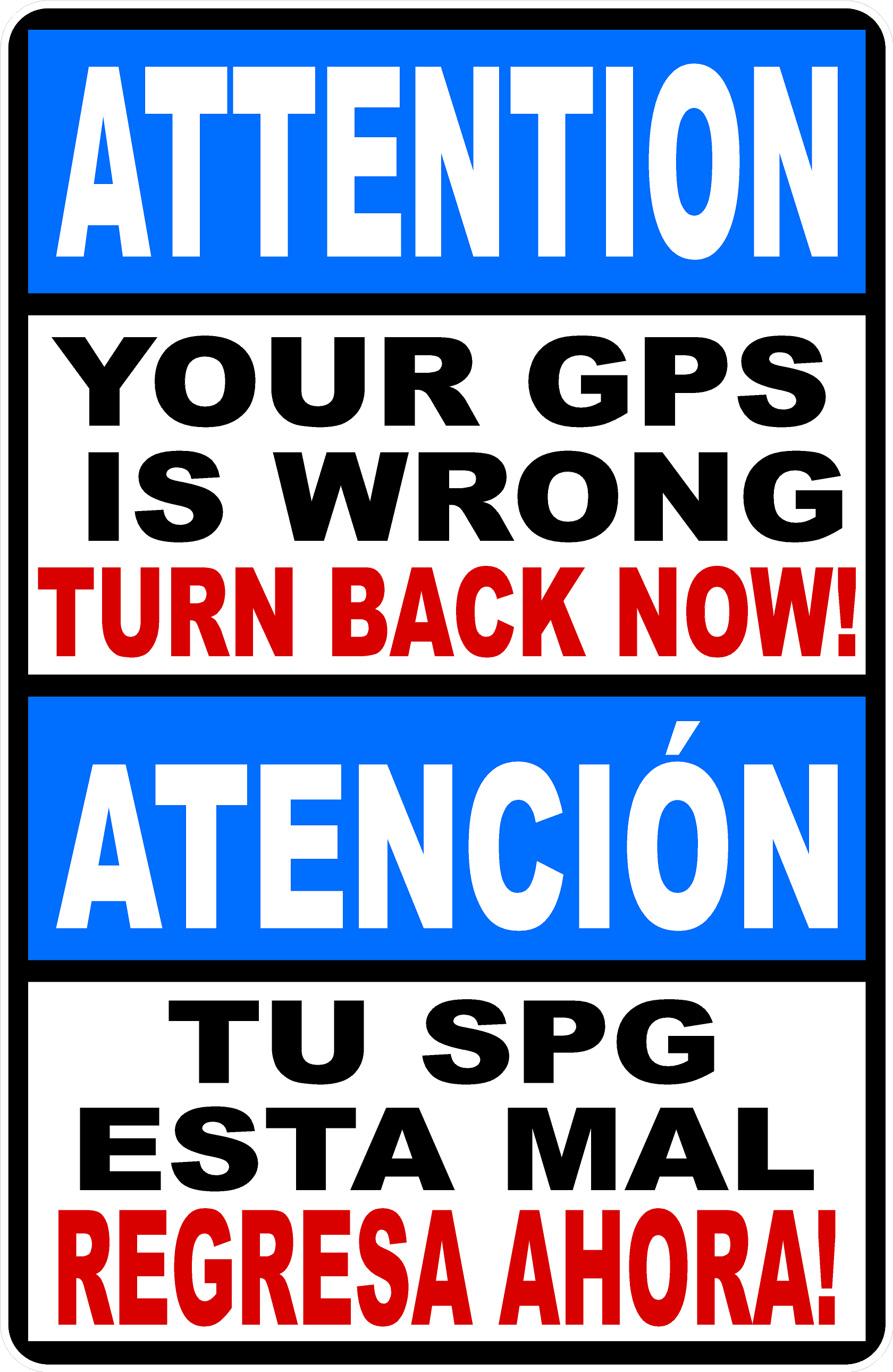 Attention Your GPS is Wrong Sign Turn Back Now Bilingual Option Sign Details