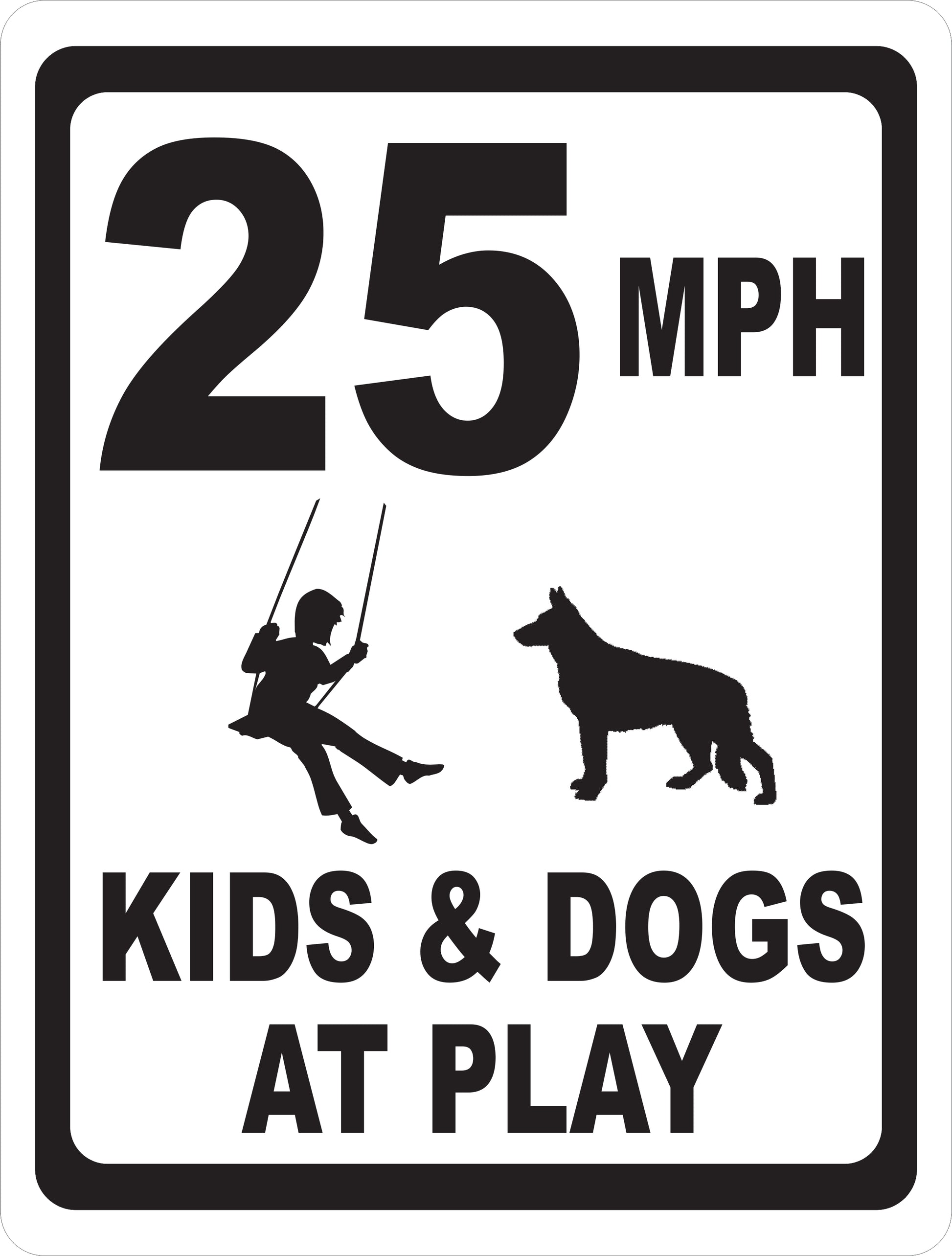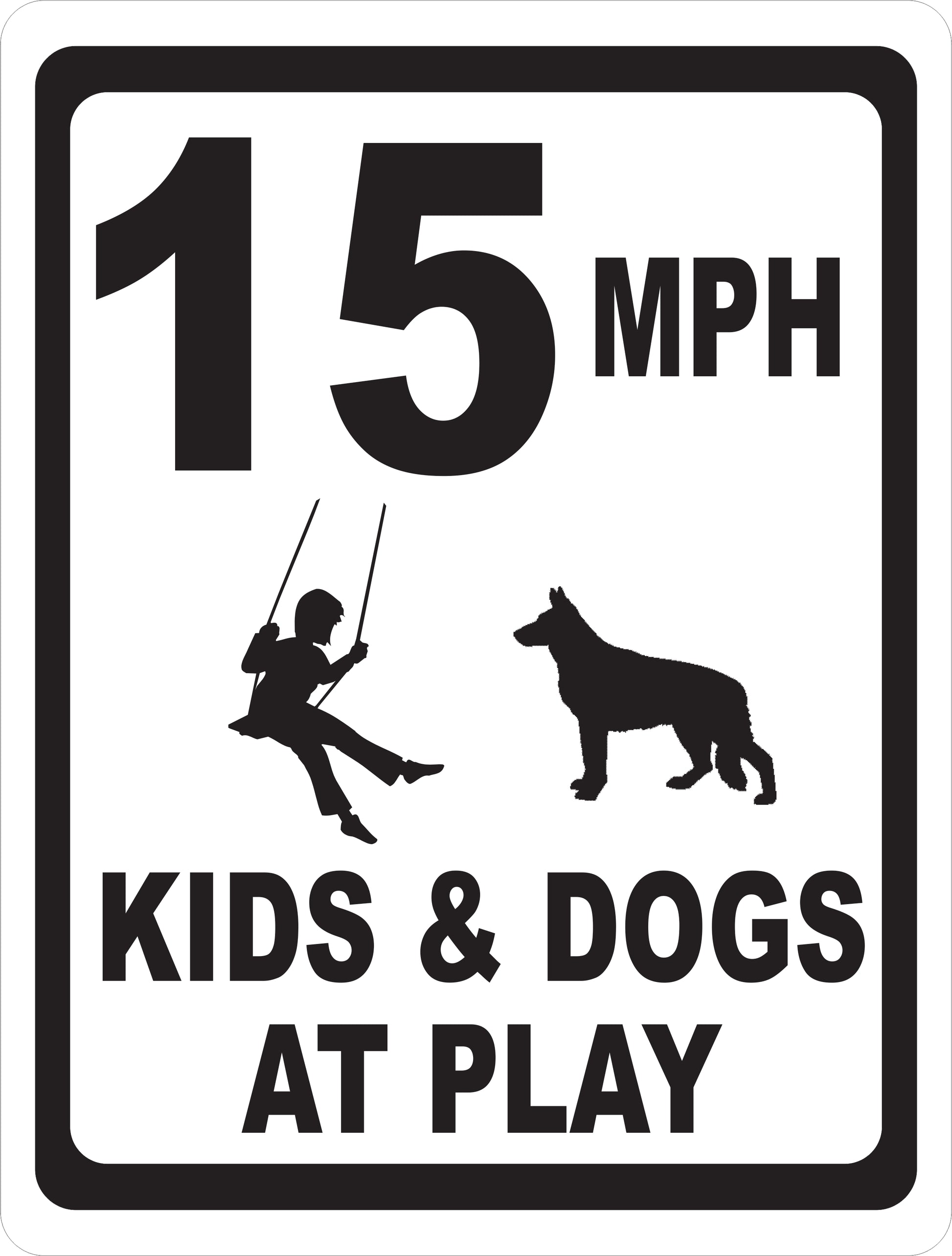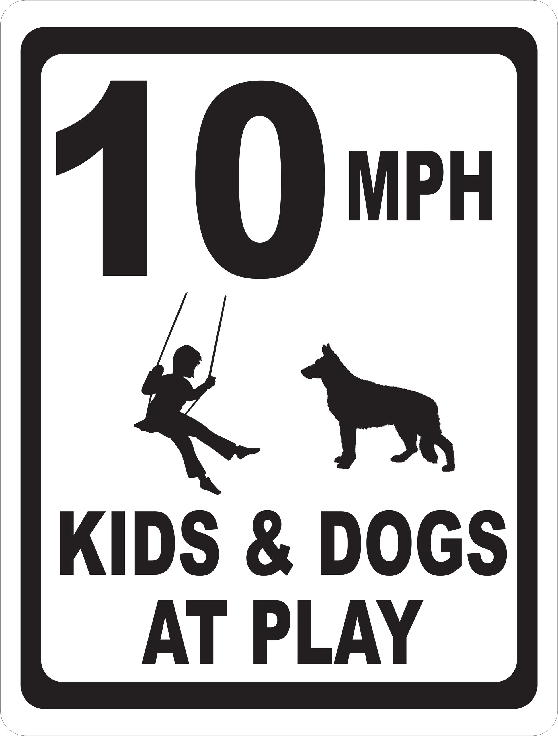 Our MPH Kids & Dogs At Play Sign is designed to alert drivers to slow down in areas where kids and dogs are present. Choose from several speed options.