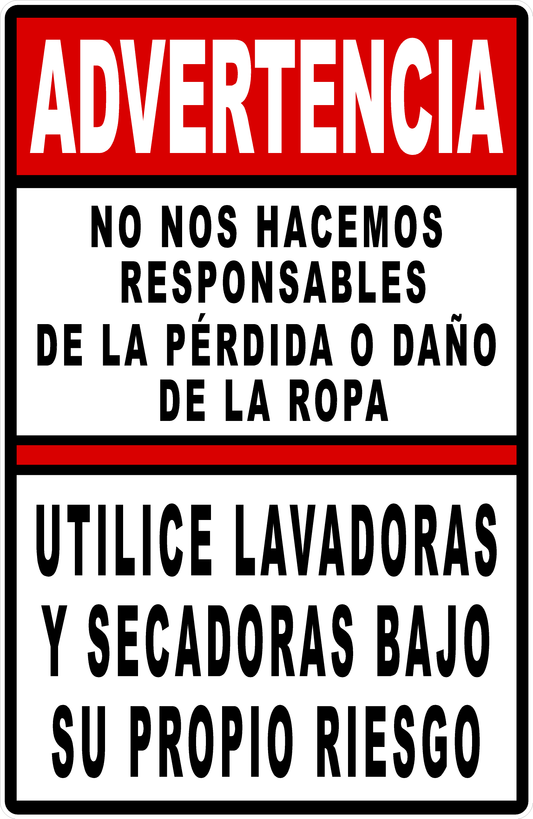 Warning We Are Not Responsible for Lost or Damaged Clothes Sign