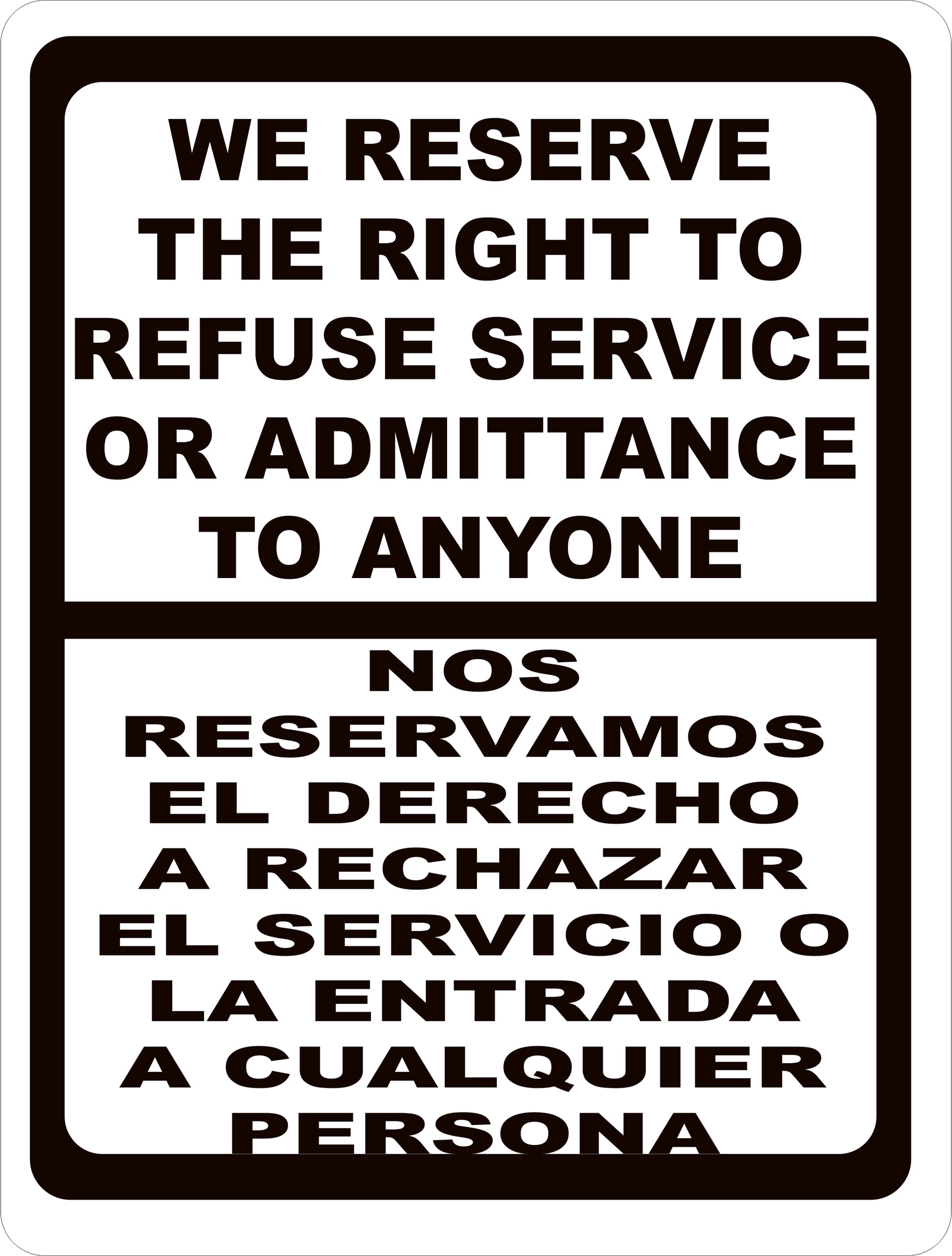 We Reserve Right to Refuse Service or Admittance Sign Details